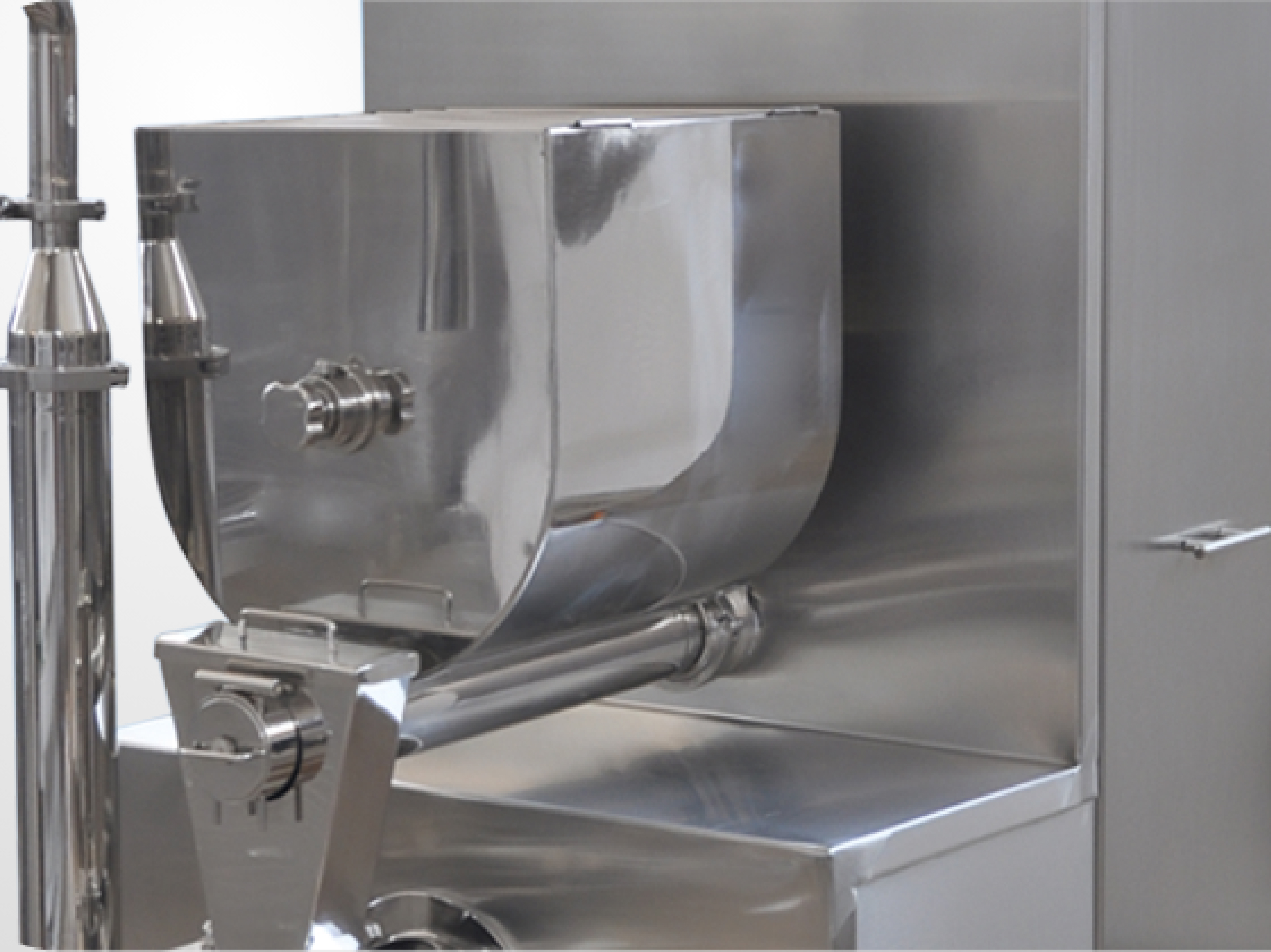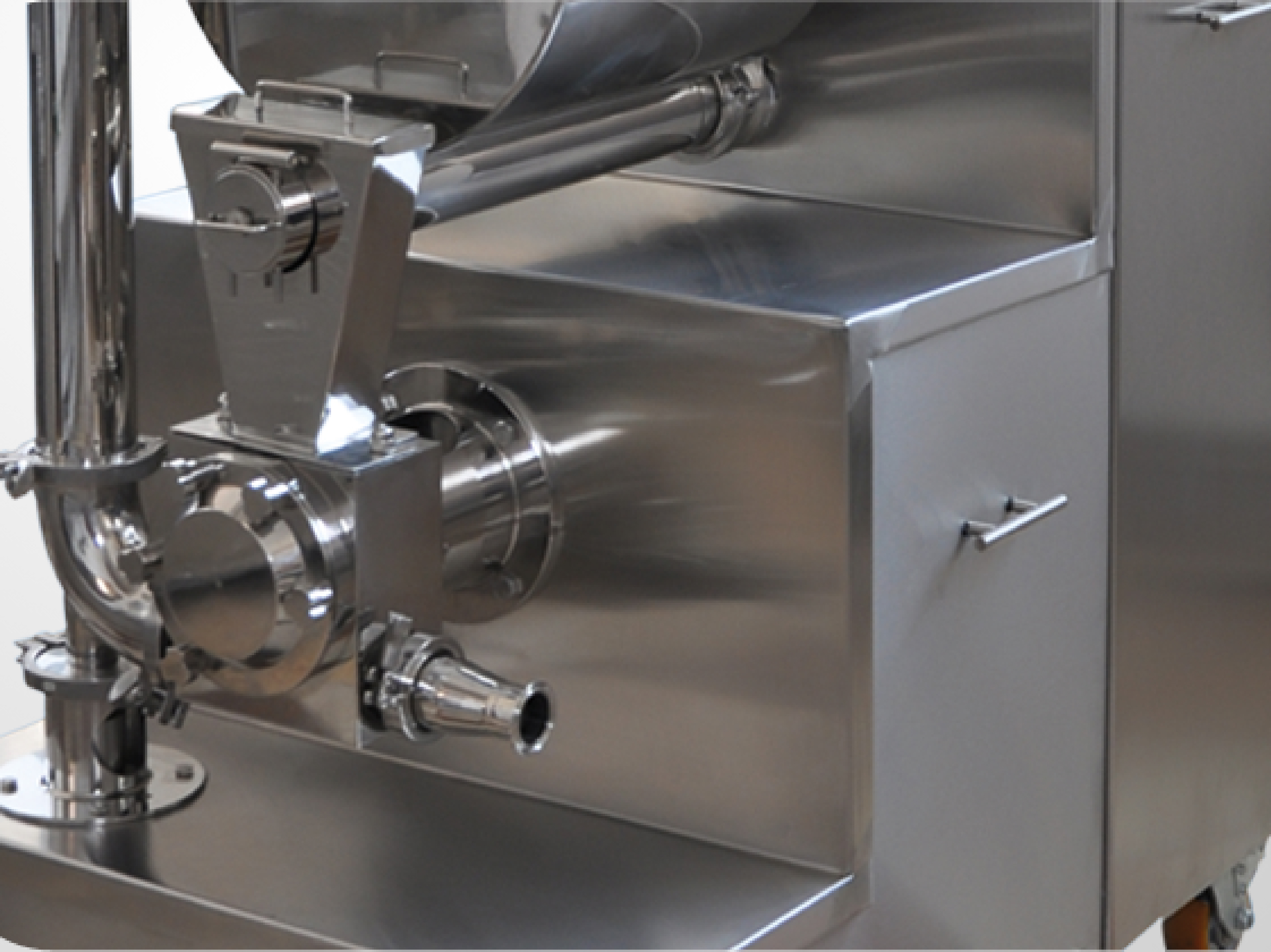It operates in connection with the continuous freezer and is designed to add nuts, pieces of dried fruits, and all types of ice cream inclusions.